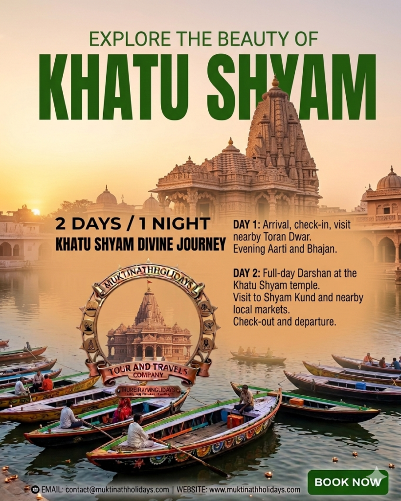 Khatu Shyam Temple. Witness the magnificent floral decorations (Shringar) of Baba Shyam and participate in the soul-stirring Maha Aarti. Our itinerary also includes a holy dip in the Shyam Kund, where the miraculous head of Baba Shyam was first discovered.